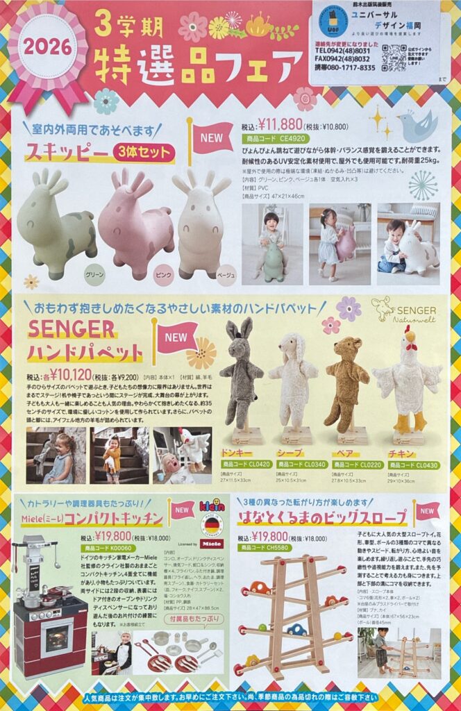 2025年12月26日 / 最終更新日時 : 2025年12月26日 udf1833 お知らせ 3学期特選フェアーのカタログが届いてます 調理器具のセットや布製抱き人形,室内での体を動かすバランス遊具やパズルあそびの商品も多く記載されています。 コメントを残す コメントをキャンセルメールアドレスが公開されることはありません。 ※ が付いている欄は必須項目ですコメント ※ 名前 ※ メール ※ サイト 次回のコメントで使用するためブラウザーに自分の名前、メールアドレス、サイトを保存する。